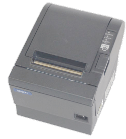 The Epson TM-T88II Printers are very reliable but occasionally they get stuck and need resetting. This is normally indicated by a flashing red Error light. To do this turn the printer off at the front hold down the feed and keep holding it down while you turn the printer back on. This should clear the error and allow you to continue.